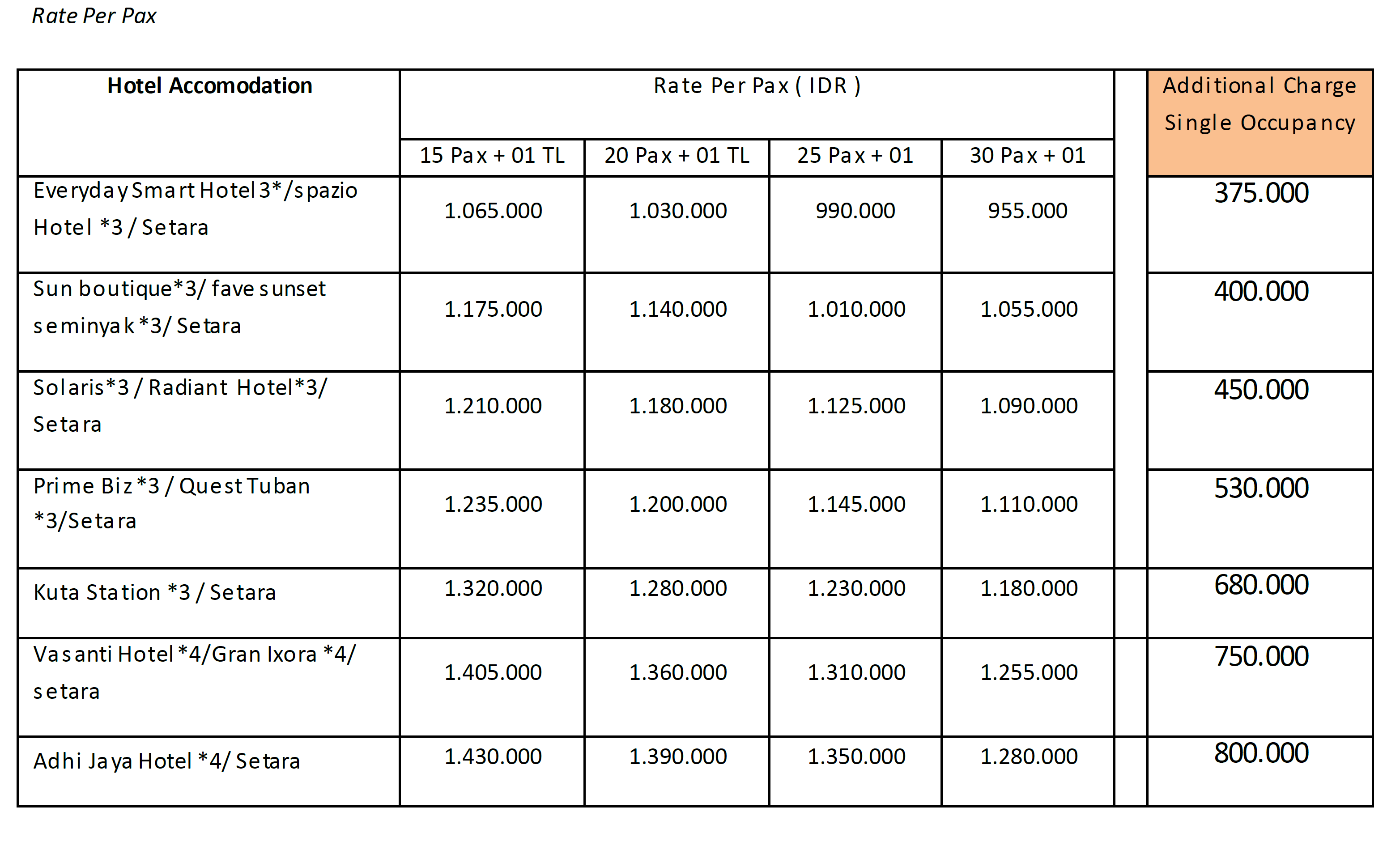 Mohon Konfirmasi terlebih dahulu apabila ada permintaan untuk paket tour diatas