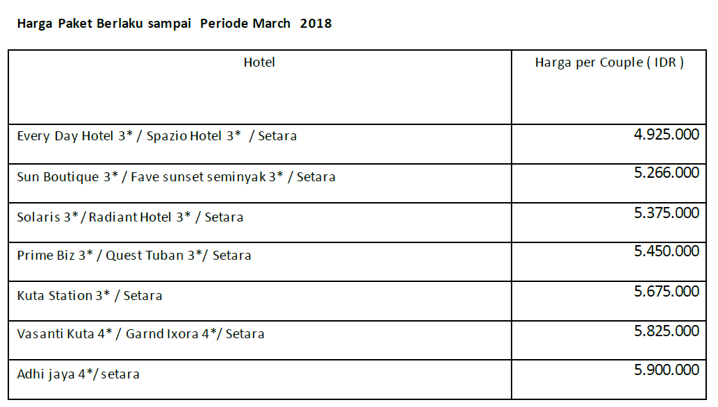 Paket tour berlaku April 2017 - Maret 2018 untuk Domestik Market / KITAS Holder dan hanya di periode low season dan tidak berlaku pada periode High season / Peak season